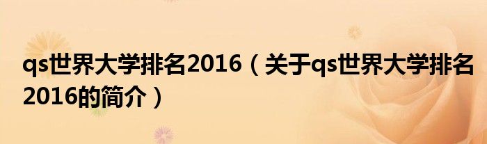 本文關于qs世界大學排名2016的簡介就講解完畢,希望對大家有所幫助。