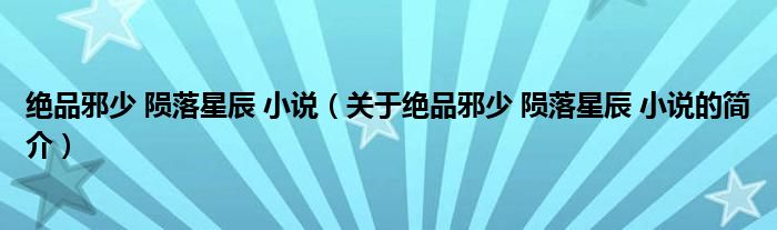 大家好,絕品邪少 隕落星辰 小說,關于絕品邪少 隕落星辰 小說的簡介很多人還不知道,現在讓我們一起來看看吧!