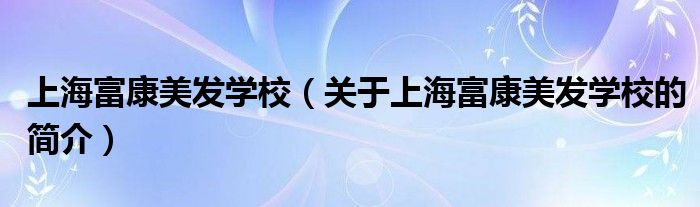 本文關于上海富康美發學校的簡介就講解完畢,希望對大家有所幫助。