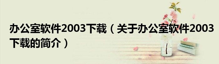 本文關于辦公室軟件2003下載的簡介就講解完畢,希望對大家有所幫助。