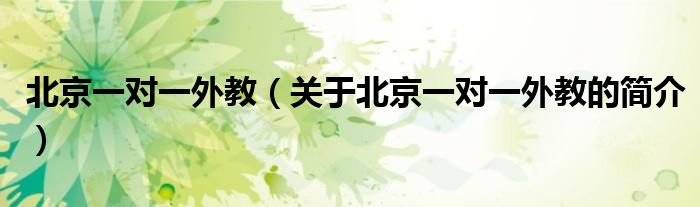 本文關于北京一對一外教的簡介就講解完畢,希望對大家有所幫助。