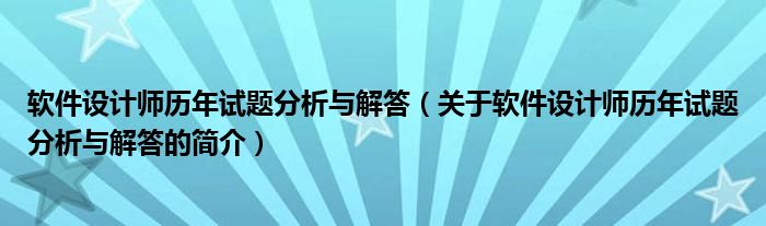 大家好,軟件設計師歷年試題分析與解答,關于軟件設計師歷年試題分析與解答的簡介很多人還不知道,現在讓我們一起來看看吧!