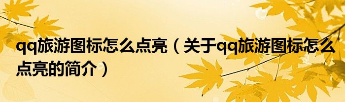 本文關(guān)于qq旅游圖標(biāo)怎么點(diǎn)亮的簡介就講解完畢,希望對(duì)大家有所幫助。