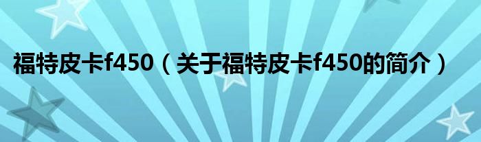 本文關于福特皮卡f450的簡介就講解完畢,希望對大家有所幫助。