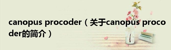 本文關于canopus procoder的簡介就講解完畢,希望對大家有所幫助。