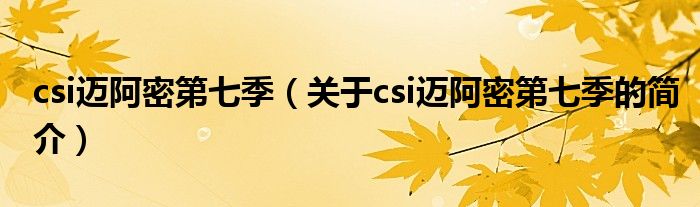 本文關于csi邁阿密第七季的簡介就講解完畢,希望對大家有所幫助。