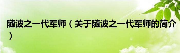 大家好,隨波之一代軍師,關于隨波之一代軍師的簡介很多人還不知道,現在讓我們一起來看看吧!