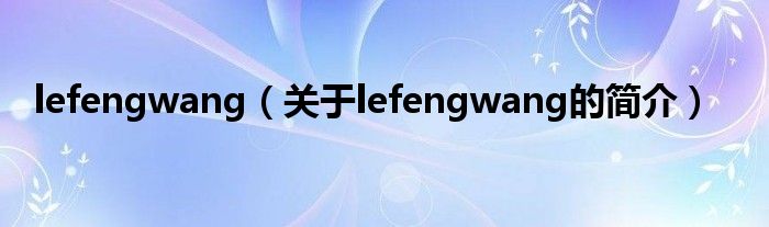 本文關(guān)于lefengwang的簡介就講解完畢,希望對大家有所幫助。