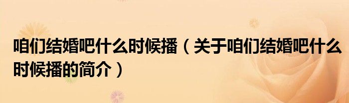 本文關于咱們結婚吧什么時候播的簡介就講解完畢,希望對大家有所幫助。