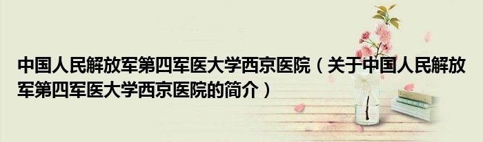 大家好,中國人民解放軍第四軍醫(yī)大學西京醫(yī)院,關于中國人民解放軍第四軍醫(yī)大學西京醫(yī)院的簡介很多人還不知道,現(xiàn)在讓我們一起來看看吧!