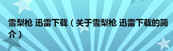 本文關于雪梨槍 迅雷下載的簡介就講解完畢,希望對大家有所幫助。