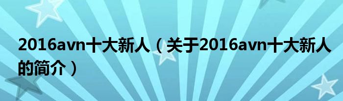 本文關于2016avn十大新人的簡介就講解完畢,希望對大家有所幫助。