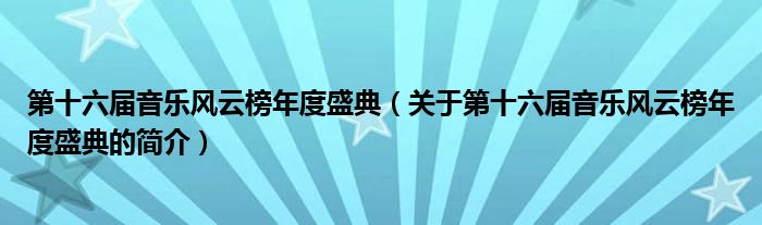本文關于第十六屆音樂風云榜年度盛典的簡介就講解完畢,希望對大家有所幫助。