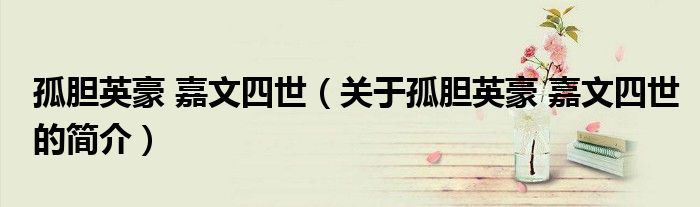 大家好,孤膽英豪 嘉文四世,關于孤膽英豪 嘉文四世的簡介很多人還不知道,現在讓我們一起來看看吧!