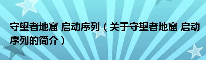 大家好,守望者地窟 啟動序列,關于守望者地窟 啟動序列的簡介很多人還不知道,現在讓我們一起來看看吧!