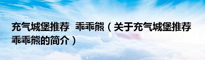 充氣城堡推薦 乖乖熊(關于充氣城堡推薦 乖乖熊的簡介)