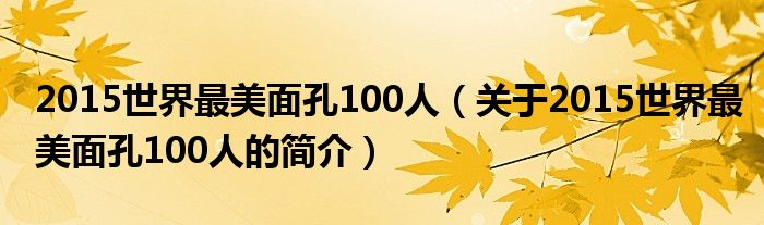 本文關于2015世界最美面孔100人的簡介就講解完畢,希望對大家有所幫助。