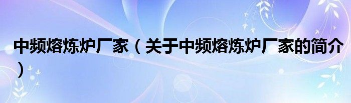 本文關(guān)于中頻熔煉爐廠家的簡介就講解完畢,希望對大家有所幫助。