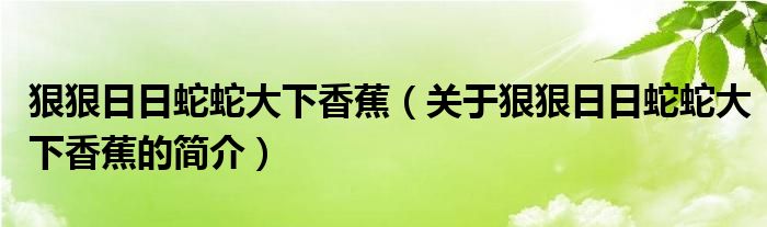 本文關(guān)于狠狠日日蛇蛇大下香蕉的簡介就講解完畢,希望對大家有所幫助。