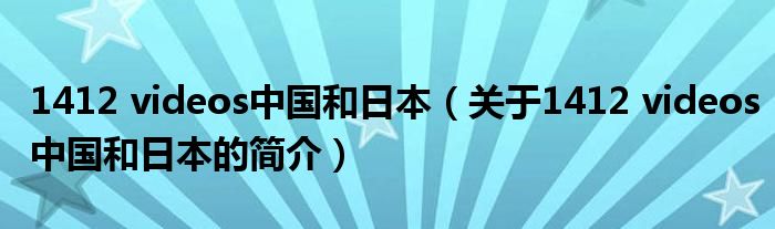 大家好,1412 videos中國和日本,關于1412 videos中國和日本的簡介很多人還不知道,現在讓我們一起來看看吧!