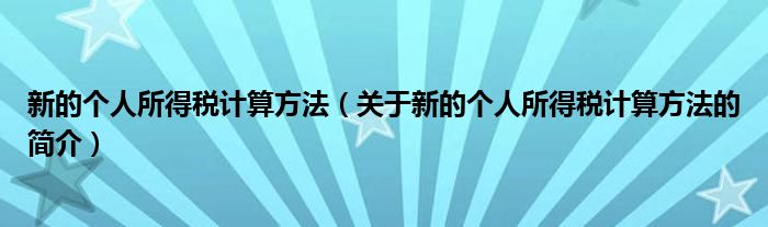 大家好,新的個(gè)人所得稅計(jì)算方法,關(guān)于新的個(gè)人所得稅計(jì)算方法的簡(jiǎn)介很多人還不知道,現(xiàn)在讓我們一起來(lái)看看吧!