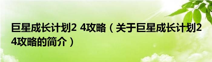 本文關于巨星成長計劃2 4攻略的簡介就講解完畢,希望對大家有所幫助。