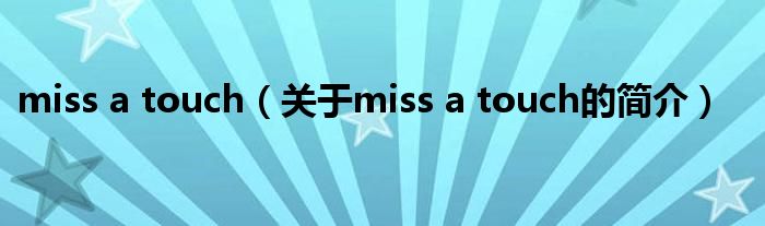 本文關于miss a touch的簡介就講解完畢,希望對大家有所幫助。