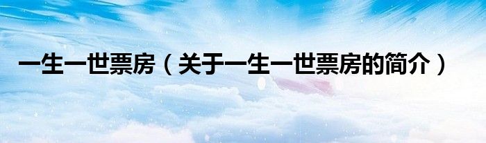 本文關(guān)于一生一世票房的簡介就講解完畢,希望對大家有所幫助。
