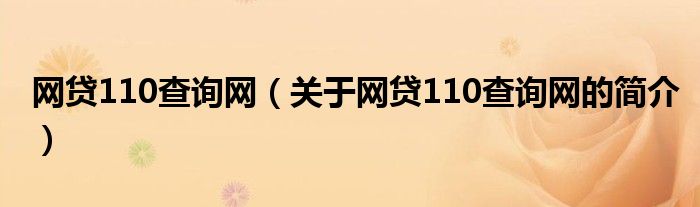本文關于網貸110查詢網的簡介就講解完畢,希望對大家有所幫助。