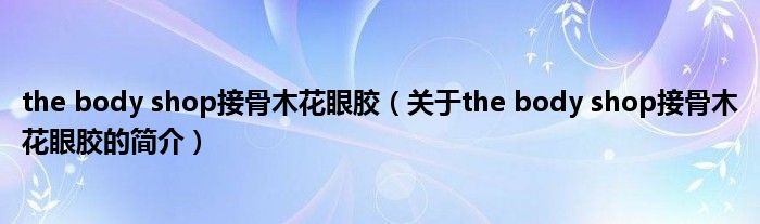 本文關(guān)于the body shop接骨木花眼膠的簡(jiǎn)介就講解完畢,希望對(duì)大家有所幫助。