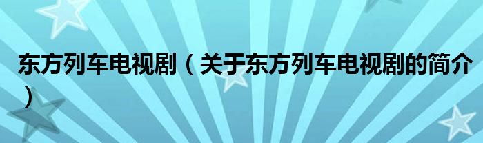 本文關于東方列車電視劇的簡介就講解完畢,希望對大家有所幫助。