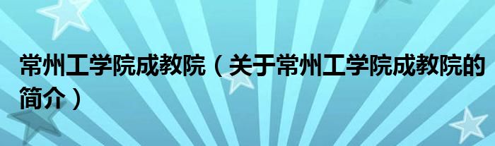常州工學院成教院(關于常州工學院成教院的簡介)