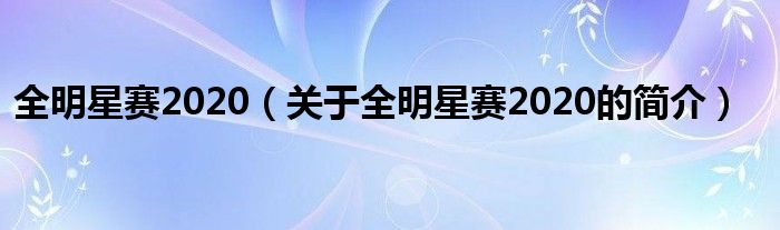 大家好,全明星賽2020,關于全明星賽2020的簡介很多人還不知道,現在讓我們一起來看看吧!