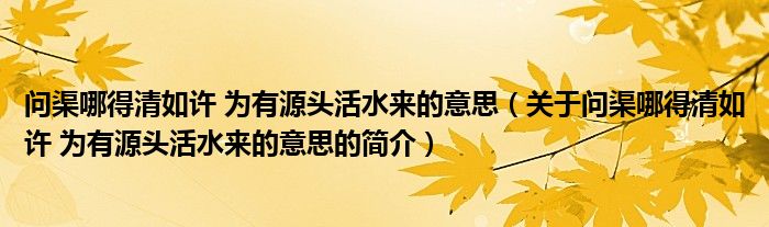 本文關于問渠哪得清如許 為有源頭活水來的意思的簡介就講解完畢,希望對大家有所幫助。