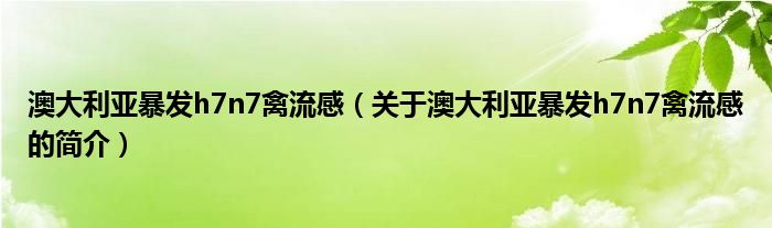 本文關于澳大利亞暴發h7n7禽流感的簡介就講解完畢,希望對大家有所幫助。