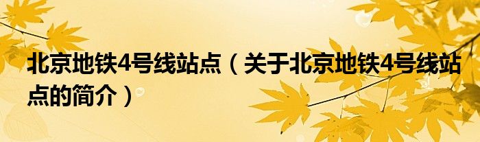 大家好,北京地鐵4號線站點,關于北京地鐵4號線站點的簡介很多人還不知道,現在讓我們一起來看看吧!