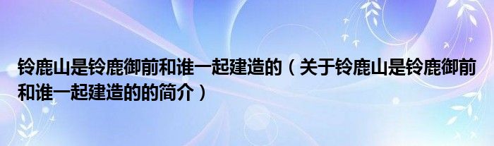 本文關于鈴鹿山是鈴鹿御前和誰一起建造的的簡介就講解完畢,希望對大家有所幫助。