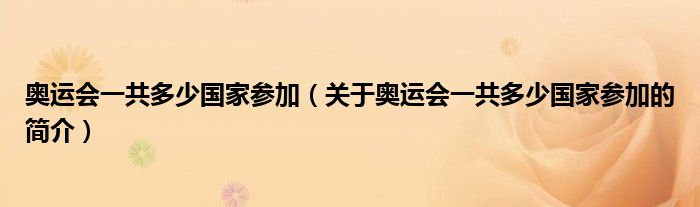 大家好,奧運會一共多少國家參加,關(guān)于奧運會一共多少國家參加的簡介很多人還不知道,現(xiàn)在讓我們一起來看看吧!