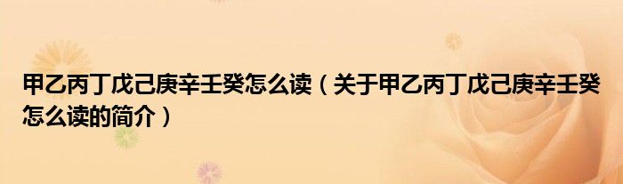 本文關于甲乙丙丁戊己庚辛壬癸怎么讀的簡介就講解完畢,希望對大家有所幫助。