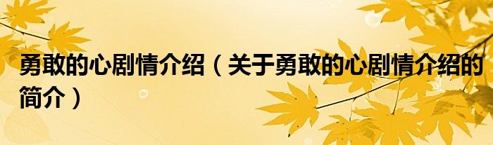 大家好,勇敢的心劇情介紹,關于勇敢的心劇情介紹的簡介很多人還不知道,現在讓我們一起來看看吧!