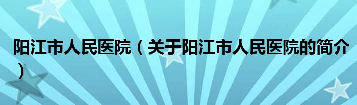 大家好,陽江市人民醫院,關于陽江市人民醫院的簡介很多人還不知道,現在讓我們一起來看看吧!