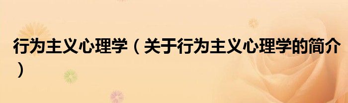 本文關于行為主義心理學的簡介就講解完畢,希望對大家有所幫助。