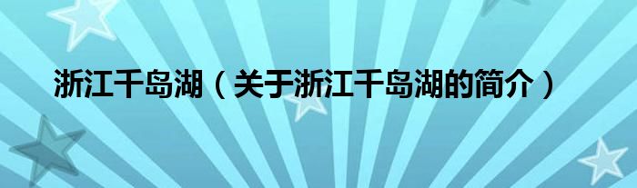 本文關于浙江千島湖的簡介就講解完畢,希望對大家有所幫助。