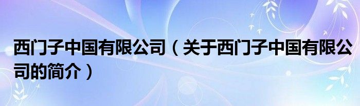 本文關(guān)于西門子中國有限公司的簡介就講解完畢,希望對(duì)大家有所幫助。