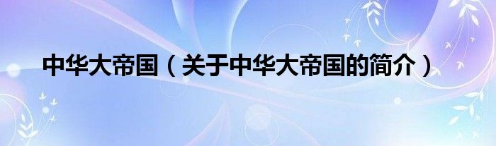 大家好,中華大帝國,關于中華大帝國的簡介很多人還不知道,現在讓我們一起來看看吧!