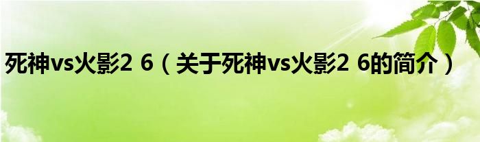 本文關于死神vs火影2 6的簡介就講解完畢,希望對大家有所幫助。