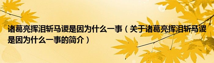 本文關(guān)于諸葛亮揮淚斬馬謖是因?yàn)槭裁匆皇碌暮喗榫椭v解完畢,希望對(duì)大家有所幫助。