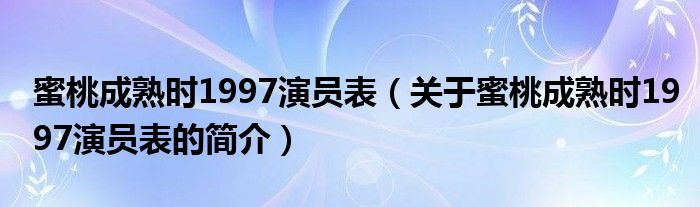 本文關于蜜桃成熟時1997演員表的簡介就講解完畢,希望對大家有所幫助。