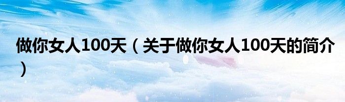 大家好,做你女人100天,關于做你女人100天的簡介很多人還不知道,現在讓我們一起來看看吧!