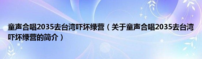 本文關于童聲合唱2035去臺灣嚇壞綠營的簡介就講解完畢,希望對大家有所幫助。